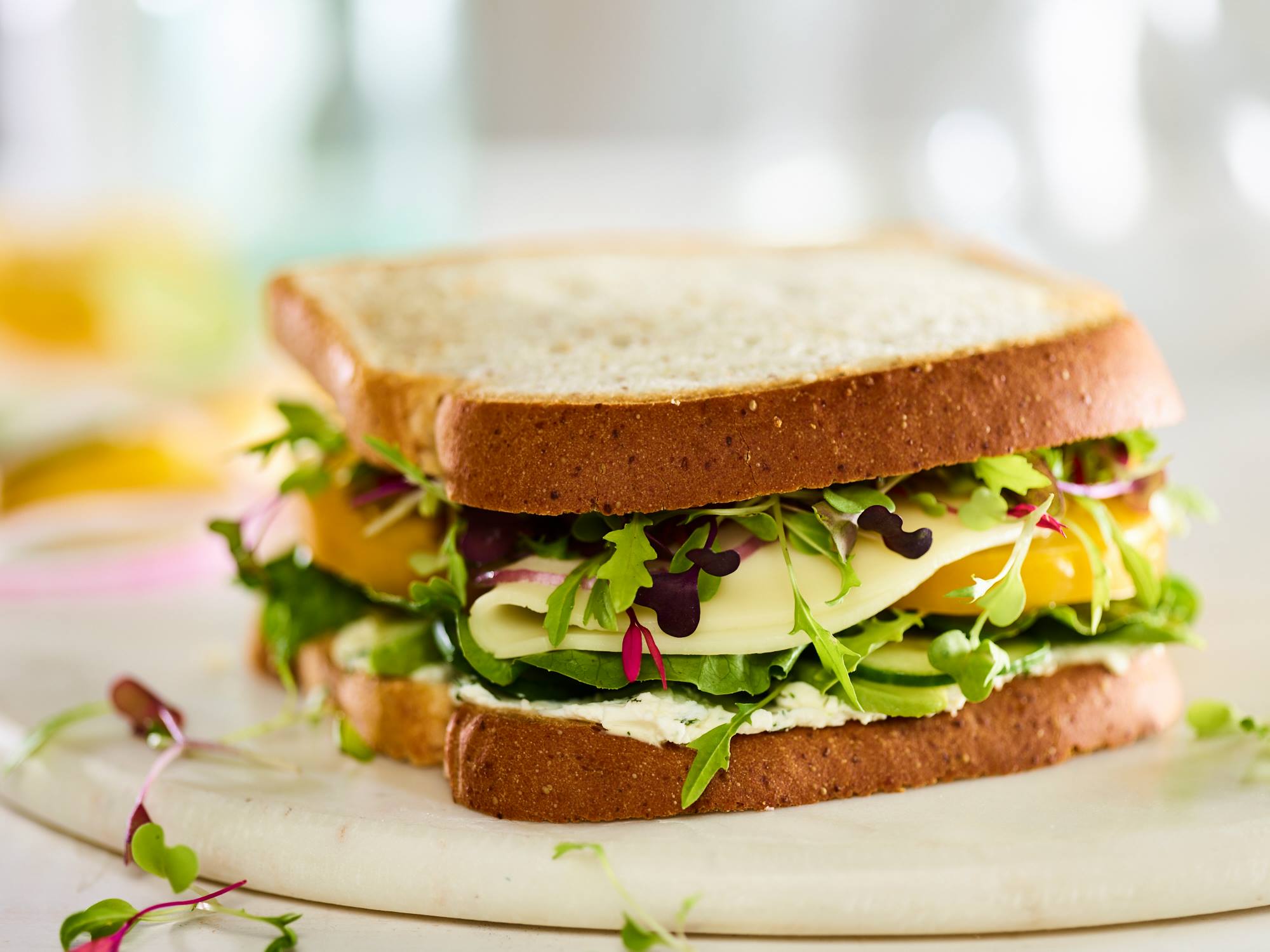 Udi's Gluten-Free Soft Sandwich Bread (24 oz., 1 Case, 6 Count) sits on a wooden table surrounded by garden flowers, with slices of the soft bread displayed in front.Two slices of Udi's Bread White Soft Sandwich Gluten Free rest on a wooden board, surrounded by lush green foliage in the background.