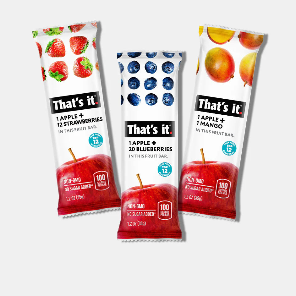 That’s It Fruit Bars are made with real fruit and no added sugars, offering a naturally sweet and wholesome snack. This 24-count variety pack includes Strawberry, Mango, and Blueberry flavors, each bar compact and perfect for lunchboxes, travel, or quick snacking. Simple, clean ingredients make these bars a healthy, convenient choice for all ages.
